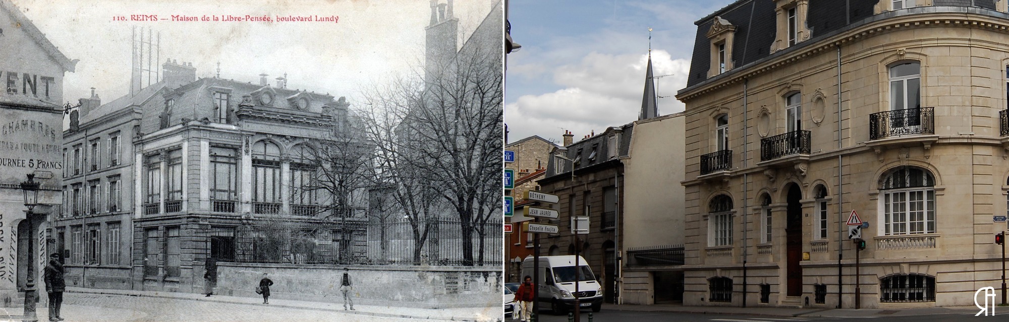Avant la Première Guerre mondiale, la Maison de la Libre Pensée à Reims se situait au 2, rue Camille-Lenoir, à l’angle du boulevard Lundy (anciennement rue de Bétheny). Elle était connue sous le nom de Salle Vanny, construite en 1891 par l’architecte Charles Payen spécifiquement pour accueillir les activités de la Libre Pensée. Ce bâtiment servait de lieu de réunion pour les libres penseurs rémois, un mouvement laïque et anticlérical actif à la fin du XIXe siècle.