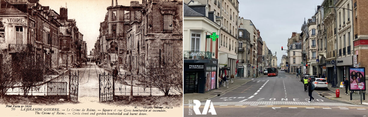 Débaptisée le 18 mars 1932, soit 11 jours après la mort d’Aristide Briand, cette place restera cependant toujours, pour les anciens Rémois, l’Esplanade Cérès. En 1765, elle était connue sous le nom d’Esplanade Coquebert. Elle devint l’Esplanade Cérès en 1841, un nom qui subsista parfois sous l’appellation place de l’Esplanade jusqu’après 1870. (Source Jean-Yves Sureau dans La Vie Rémoise)