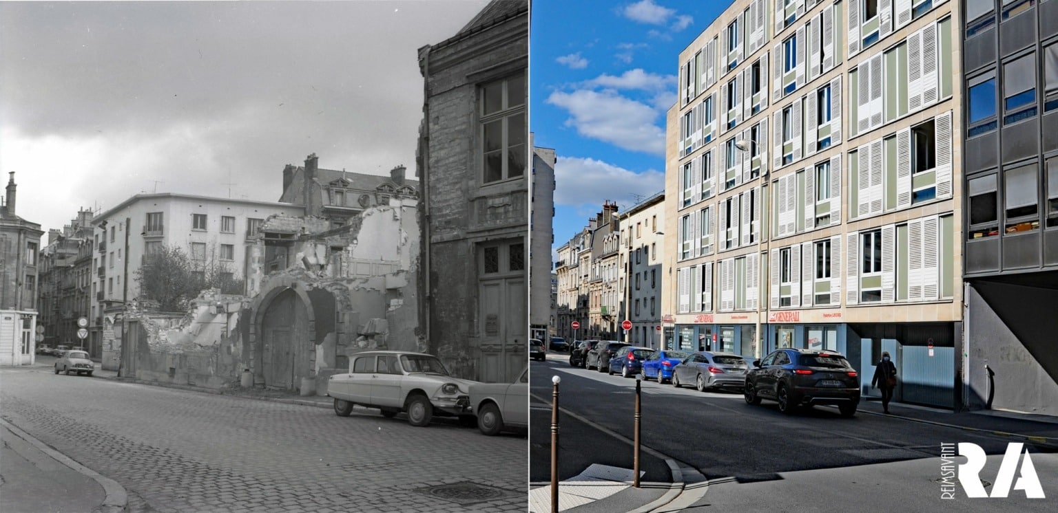 La rue des Marmouzets rejoint la rue Cérès. Beaucoup de changement ! La maison de droite sera elle aussi détruite quelques années plus tard. Seuls repères subsitant : les maisons de la rue Bonhomme au fond qui n’ont pas changé,. L’immeuble moderne à l’angle de la rue Cérès et de la rue Bonhomme était déjà construit.