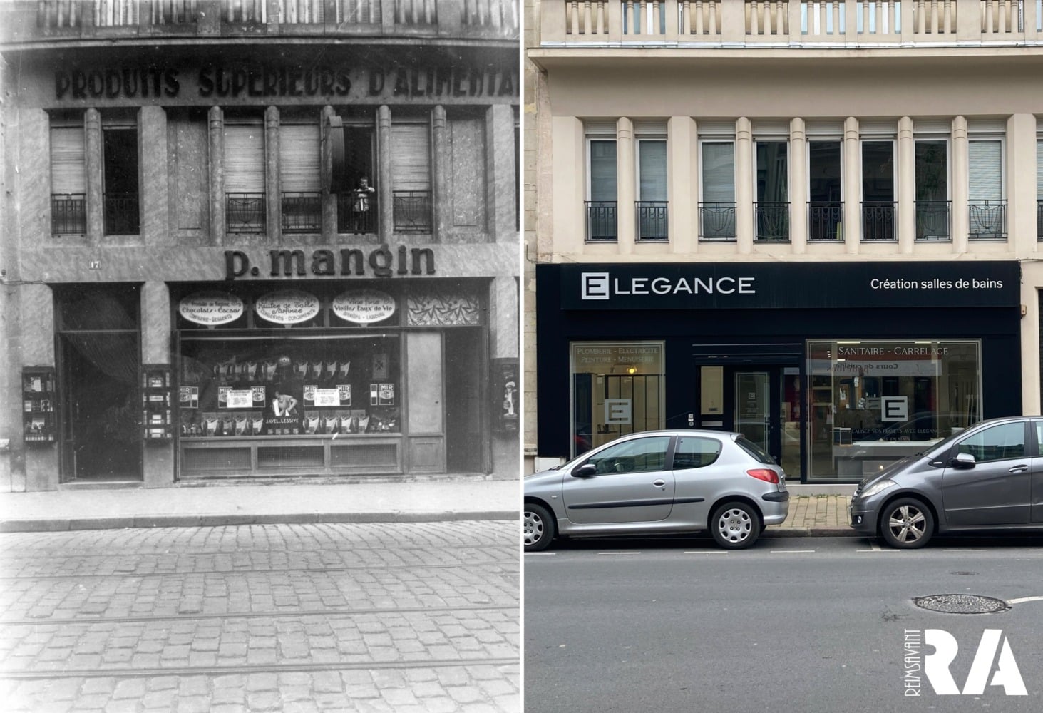Mon père (Pierre MANGIN) a ouvert le magasin d’alimentation « la Grande Épicerie Fine – Vins Nicolas » en 1930. Une caissière, trois vendeuses, une secrétaire au bureau, deux commis et un chauffeur-livreur formaient le personnel. Ma mère Lucie (née HOUSSART) était omniprésente, du matin au soir, tous les jours et même bien souvent le dimanche matin. Mon père s’occupait des achats, de la partie administrative et de l’organisation des livraisons à domicile. En outre, il dirigeait le Groupement d’Approvisionnement en Gros qu’il avait crée sous forme de coopérative avec une quarantaine d’épiciers importants du département. L’activité du magasin sous l’enseigne Pierre MANGIN s’est arrêtée au milieu des années 60.