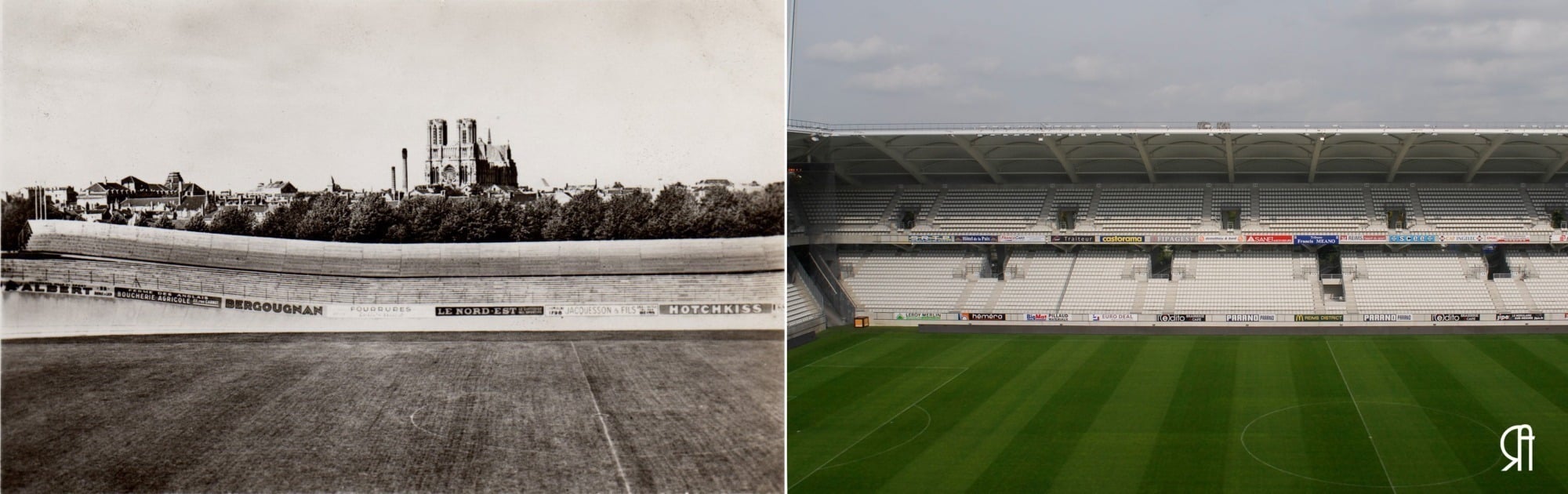 Dans les années 2000, le Stade de Reims retrouve l’échelon professionnel. Le stade de 9 500 places est remplacé par une structure nouvelle de 21 684 places dessinée par l’architecte Michel Rémon. Celle-ci est inaugurée en décembre 2008. Source Reims Tourisme