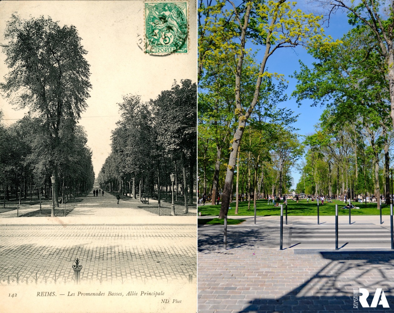 Elles offrent aux promeneurs un espace ombragé planté de grands arbres dont des platanes majestueux. Face au parc de la Patte d’Oie, on peut remarquer l’ombre de la “Porte de Paris” sur la photographie actuelle, grille monumentale réalisée pour le sacre de Louis XVI, transférée sur les Basses Promenades en 1953 et restaurée récemment.