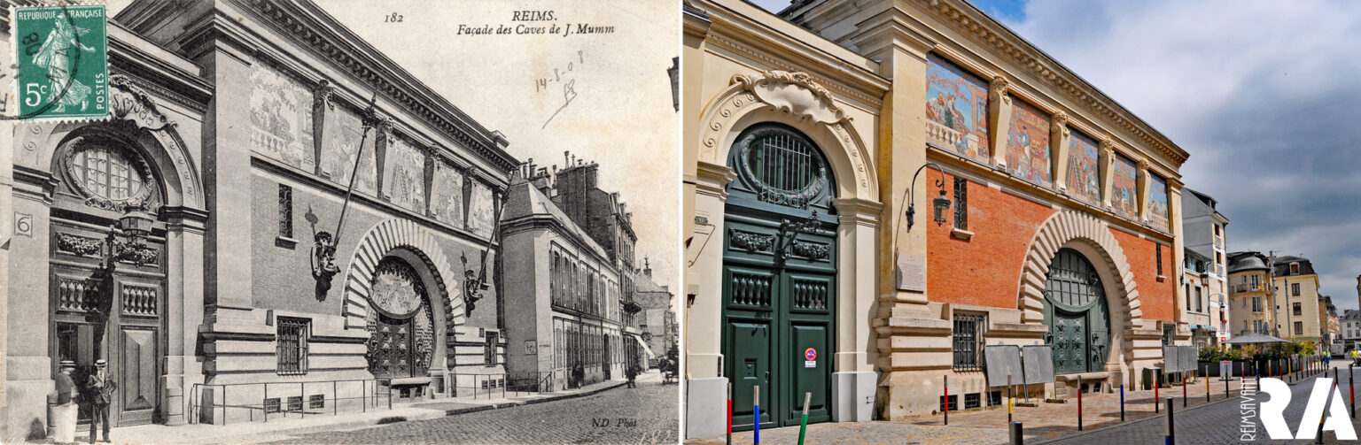 Il a été construit en 1898 sous la direction de l’architecte rémois Ernest Kalas pour la société de champagne Jules Mumm. De nombreux artistes ont été conviés pour la décoration : des mosaïques réalisées par Auguste Guilbert-Martin, sur des dessins de Joseph Blanc et d’Octave Guillonnet. Les cariatides ont été réalisées par Joseph Wary sur des dessins d’Émile Peynot ; elles représentent quatre vertus du vin : Virtus, Ingenium, Amor et gaudium.