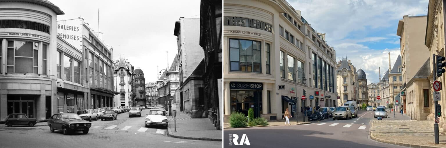 Il abrite depuis 2008 différents commerces dont « Monop » « sushi shop » et des appartements de standing. Comme vous pouvez le voir l’enseigne « Galeries Rémoises – Maison Lorin et Tricot » a été conservée.