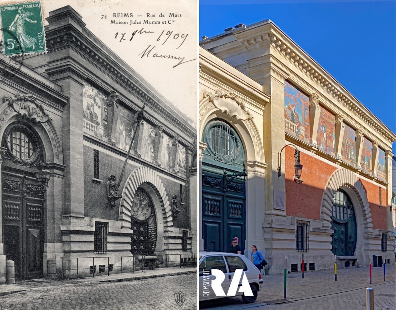 En 1898, une branche cadette de la maison Mumm fait bâtir sur le site d’origine de la maison mère, un cellier orné de cinq grands panneaux de mosaïque montrant élaboration du champagne, de la vendange à la mise en bouteille. Le bâtiment est l’œuvre des architectes Bègue et Kalas, les mosaïques sont réalisées par les ateliers Guilbert-Martin de Saint-Denis sur des cartons de Blanc et Guillonnet.