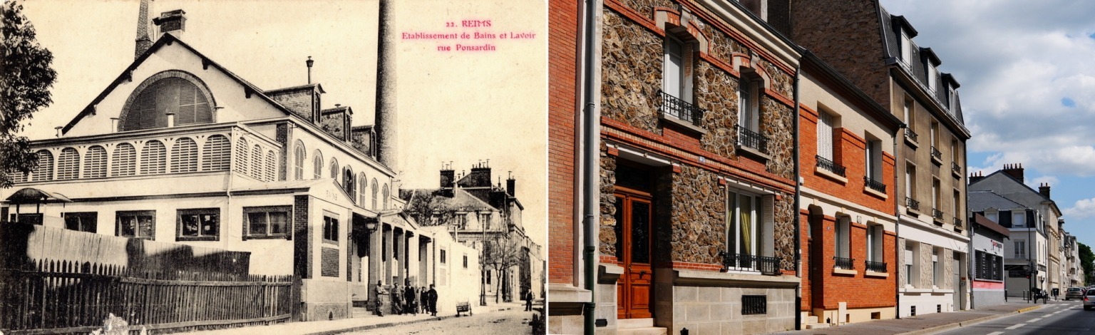 Les travaux des bains et lavoirs publics rue Ponsardin à Reims sont décidés par le Conseil municipal en juillet 1852. L’établissement est créé sous la forme d’une société privée, gérée par un conseil d’administration. Qualifié d’utopie lors de son inauguration, il est finalement un succès et apporte dès la première année de fonctionnement 30 000 francs de bénéfices à la ville. Devant cette réussite exemplaire, plusieurs villes veulent copier l’établissement rémois et demandent les plans.