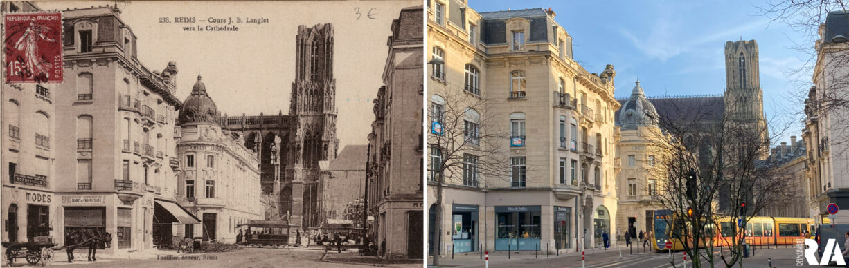Sur cette carte, envoyée en 1923, on peut remarquer que les travaux ne sont pas encore terminés et surtout la toiture de la cathédrale est encore absente, elle sera achevée en 1938, grâce aux efforts de l’architecte Henri Deneux et au financement de la Fondation Rockefeller.